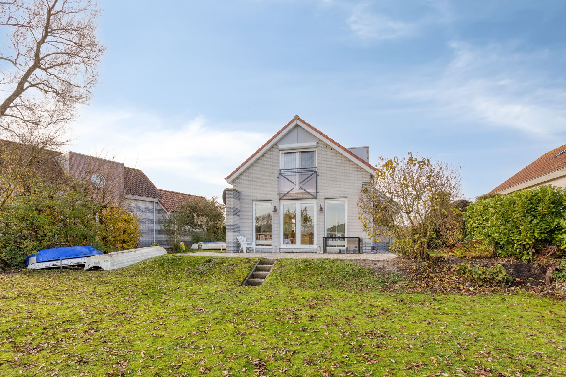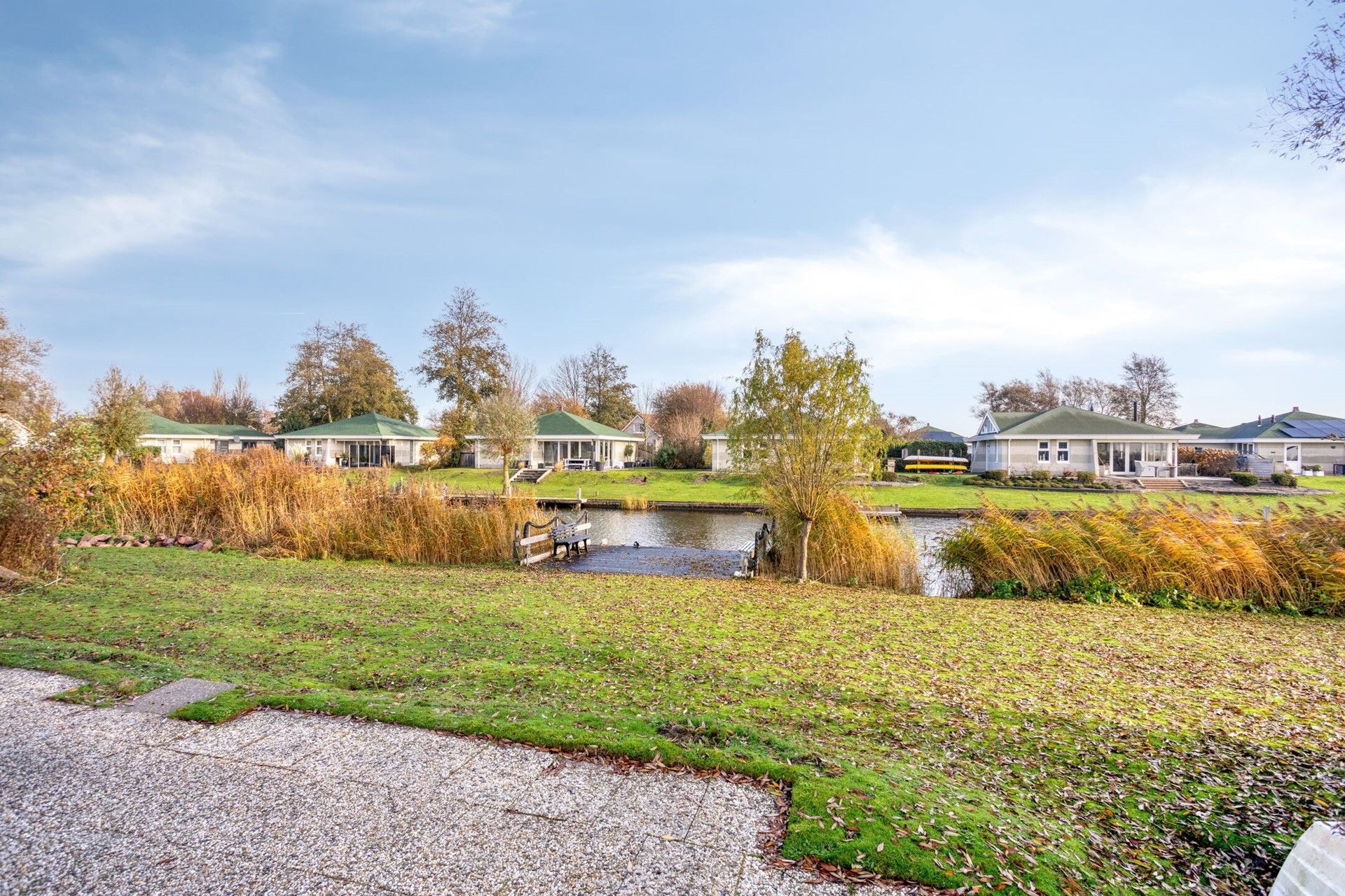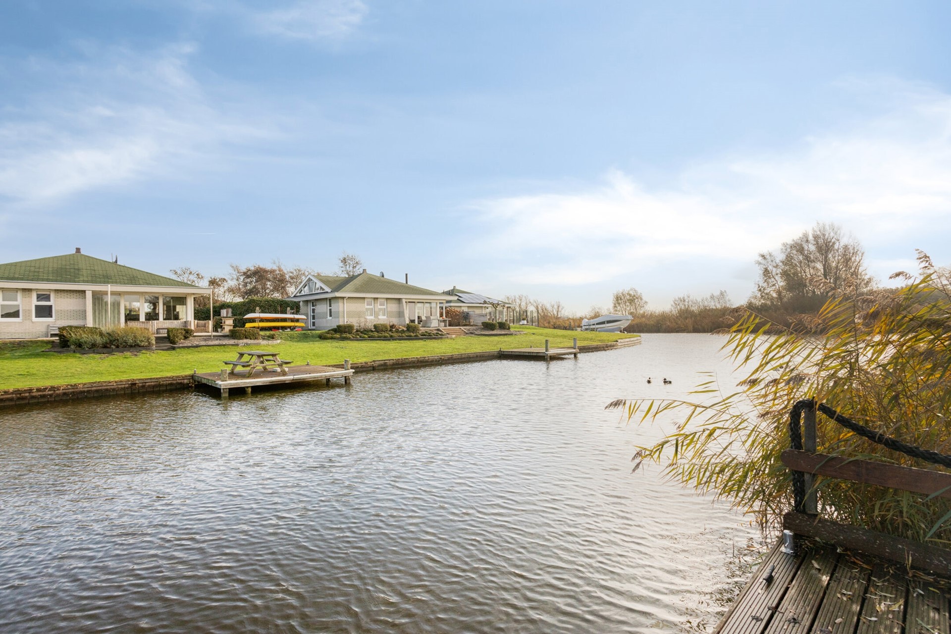de zij-entree geeft toegang tot de L-vormige woonkamer waarvan de openslaande deuren uitzicht geven op de tuin met daarachter de steiger en het open vaarwater. De keuken is voorzien van een gaskookplaat, vaatwasser, koelkast en combimagnetron. De inpandige berging is extra breed. Hierin staat de was/droogmachine en is er voldoende ruimte voor fietsen en tuinspullen.