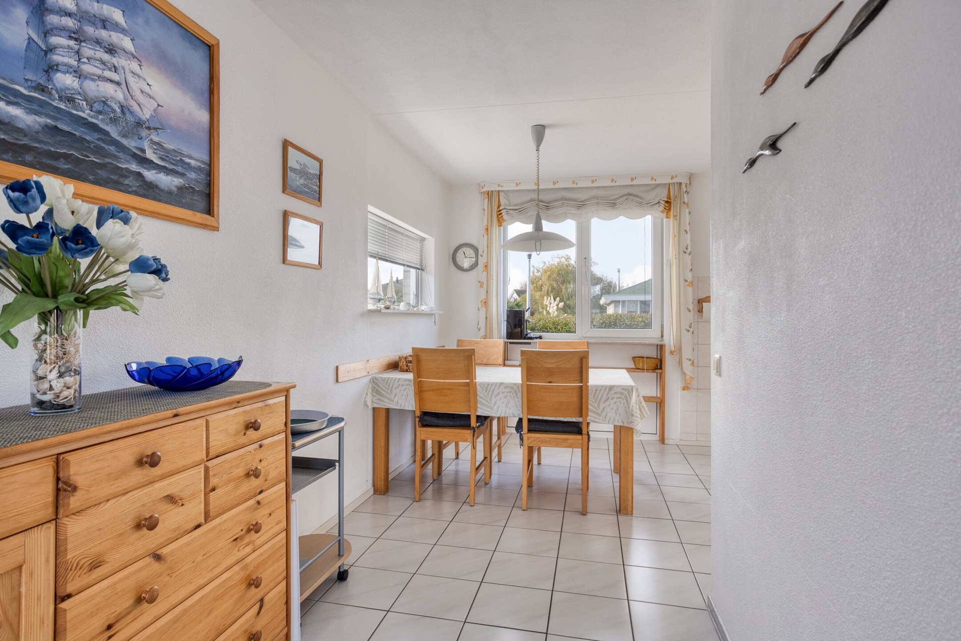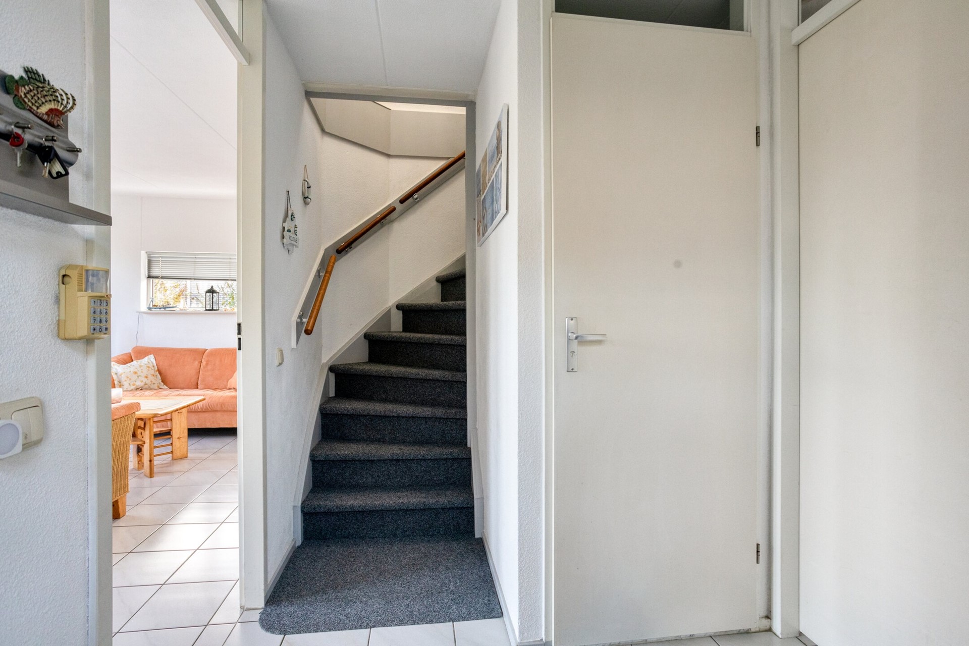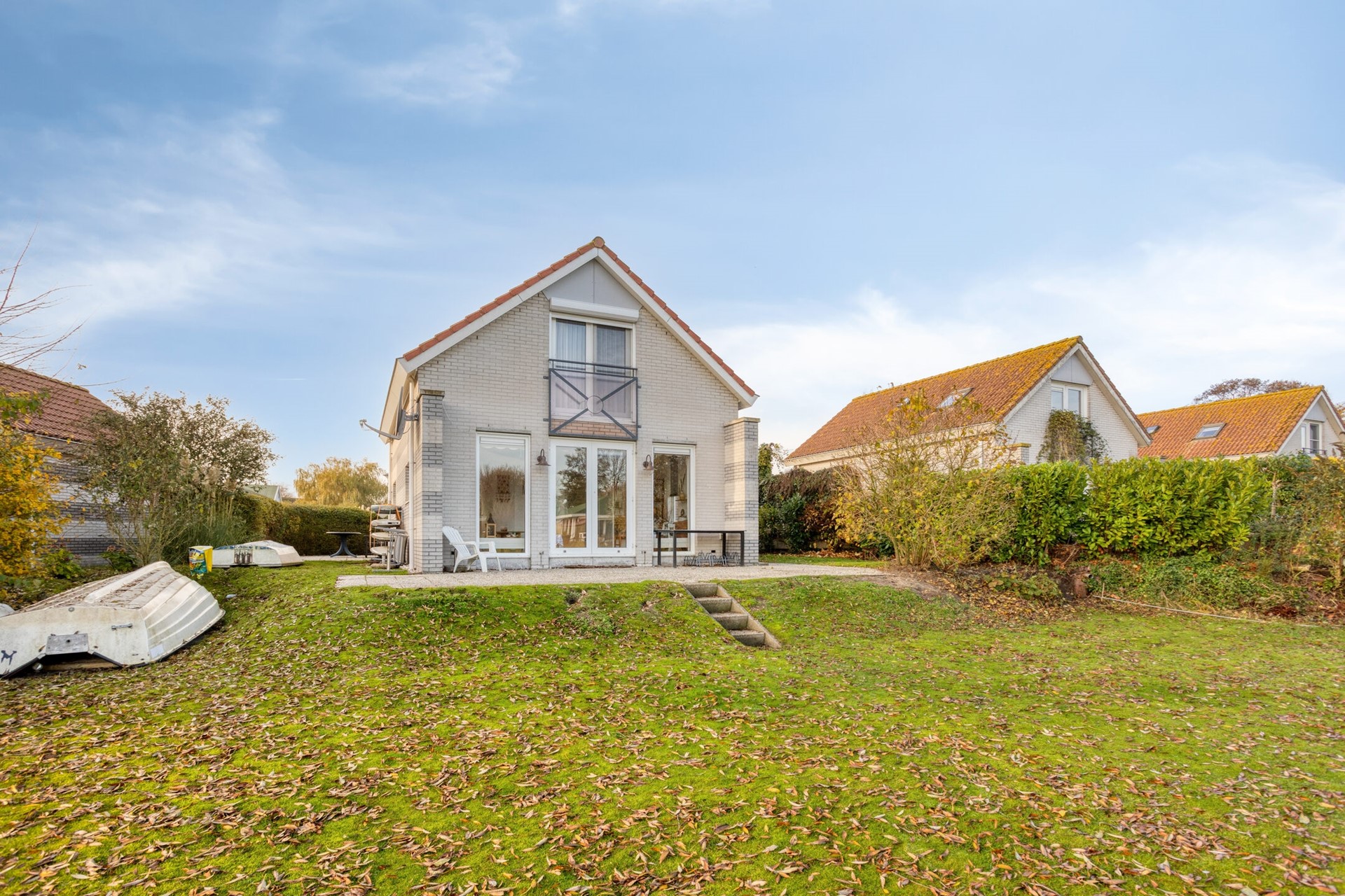 de zij-entree geeft toegang tot de L-vormige woonkamer waarvan de openslaande deuren uitzicht geven op de tuin met daarachter de steiger en het open vaarwater. De keuken is voorzien van een gaskookplaat, vaatwasser, koelkast en combimagnetron. De inpandige berging is extra breed. Hierin staat de was/droogmachine en is er voldoende ruimte voor fietsen en tuinspullen.