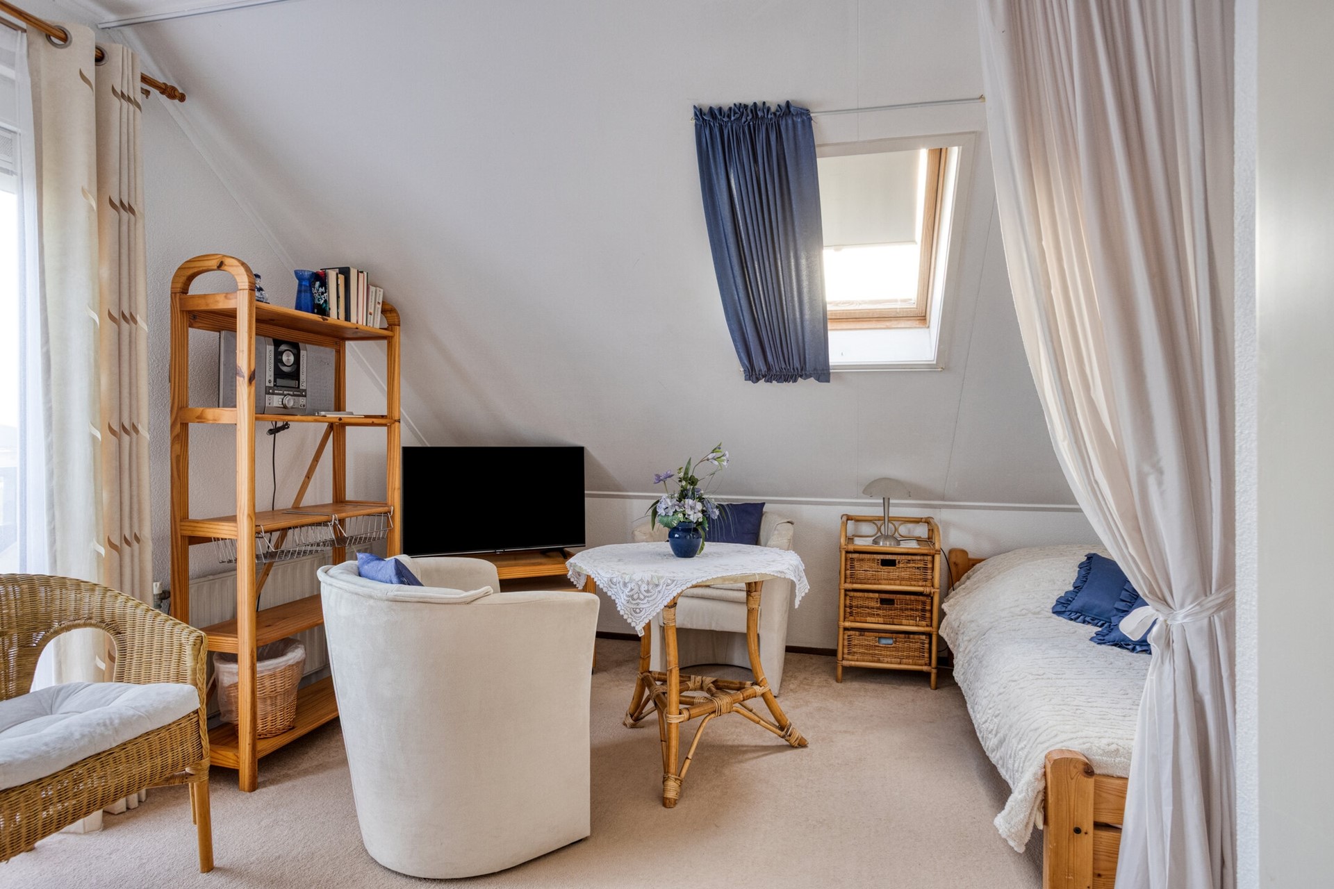 De centrale overloop geeft toegang tot 2 heerlijk ruime slaapkamers (voorheen 3). De gemoderniseerde badkamer. De ruimte is ingedeeld met een royale inloopdouche, wastafelmeubel en tweede toilet. Achter de trap bevindt zich een afsluitbare eigenaarskast, waardoor deze woning uitermate geschikt is voor de combinatie van verhuren en zelf genieten.