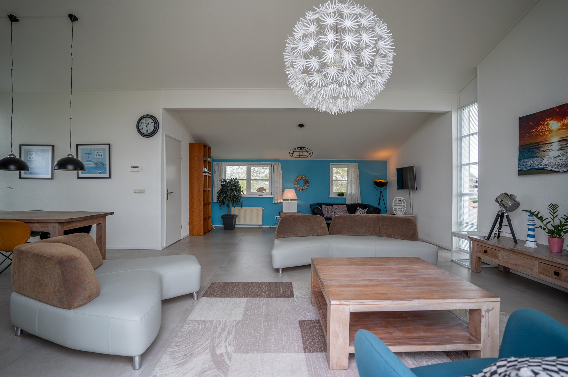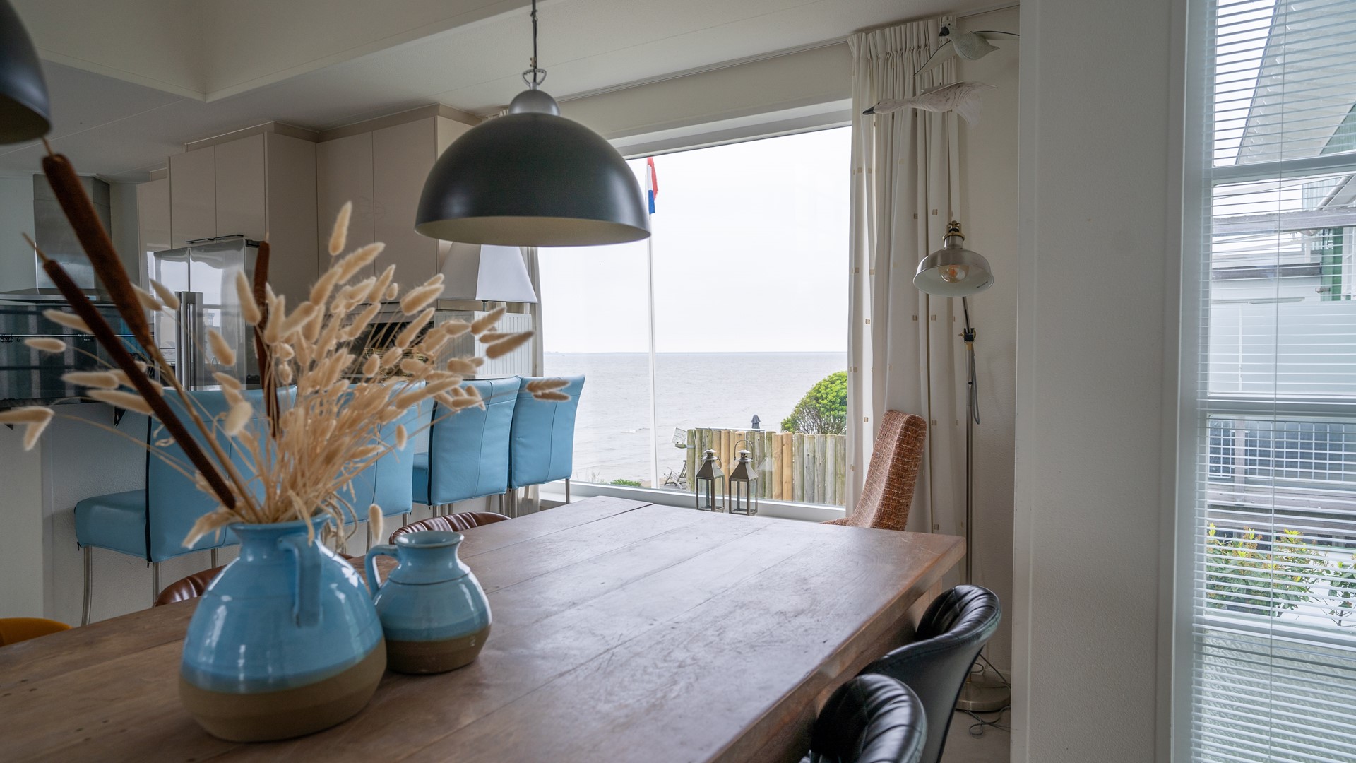 Vanuit de achtertuin loopt u zo het strand op. De woning is voorzien van 4 slaapkamers en een moderne badkamer met sauna. De living bevindt zich op de verdieping en geeft een fantastisch uitzicht over het IJsselmeer. U ziet de boten door de sluizen van de Afsluitdijk gaan.
