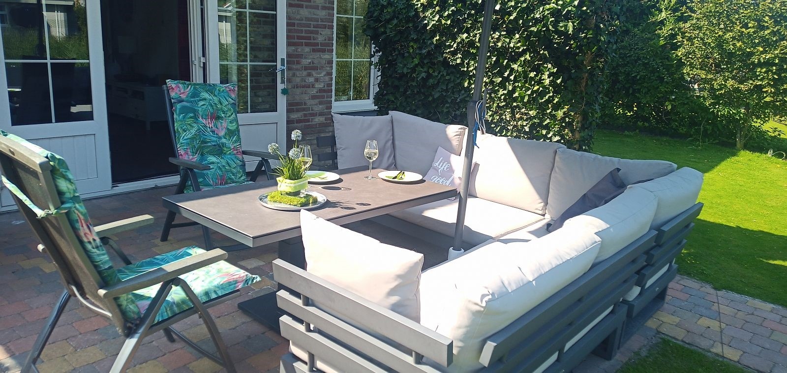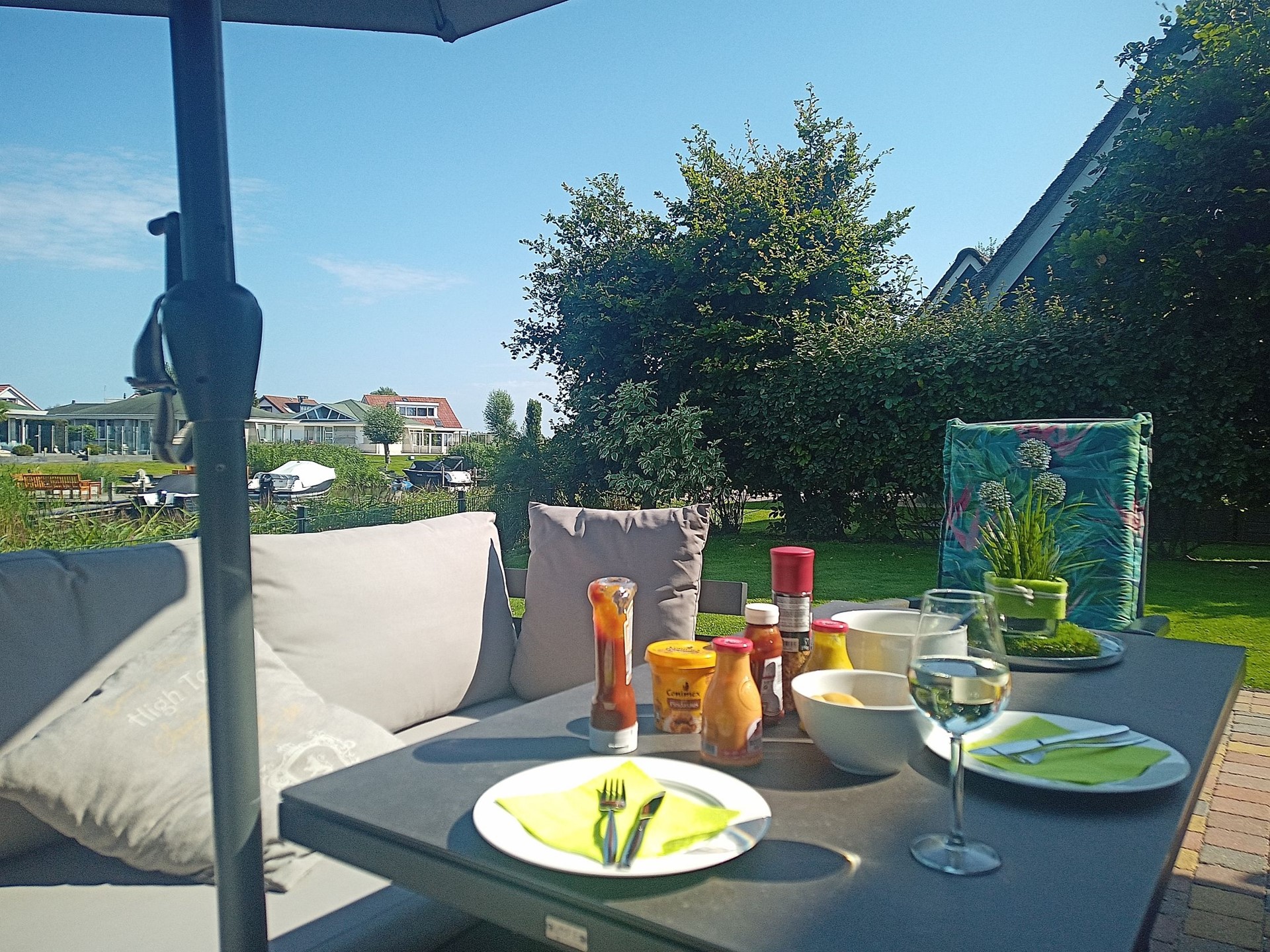 De terrassen zijn zo aangelegd dat u de hele dag van de zon kan gaan genieten. De hardhouten steiger is ideaal voor het aanleggen van een boot of om te vissen of zwemmen. Met het besproeiingssysteem houdt u het gehele jaar het gazon groen.