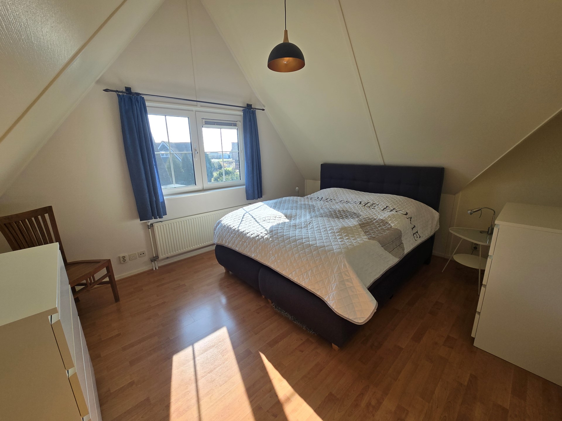 Wat direct opvalt is de hoogte van de ruimtes. De plafonds lopen door tot aan de nok. Er zijn 3 slaapkamers waarvan er 2 ruim zijn. Er is veel bergruimte in de 2 bergruimten op de overloop. Deze zijn ook prima te gebruiken als eigenaarskasten bij verhuur. De 2de badkamer beschikt over een douchecabine, wastafelmeubel en hangcloset.