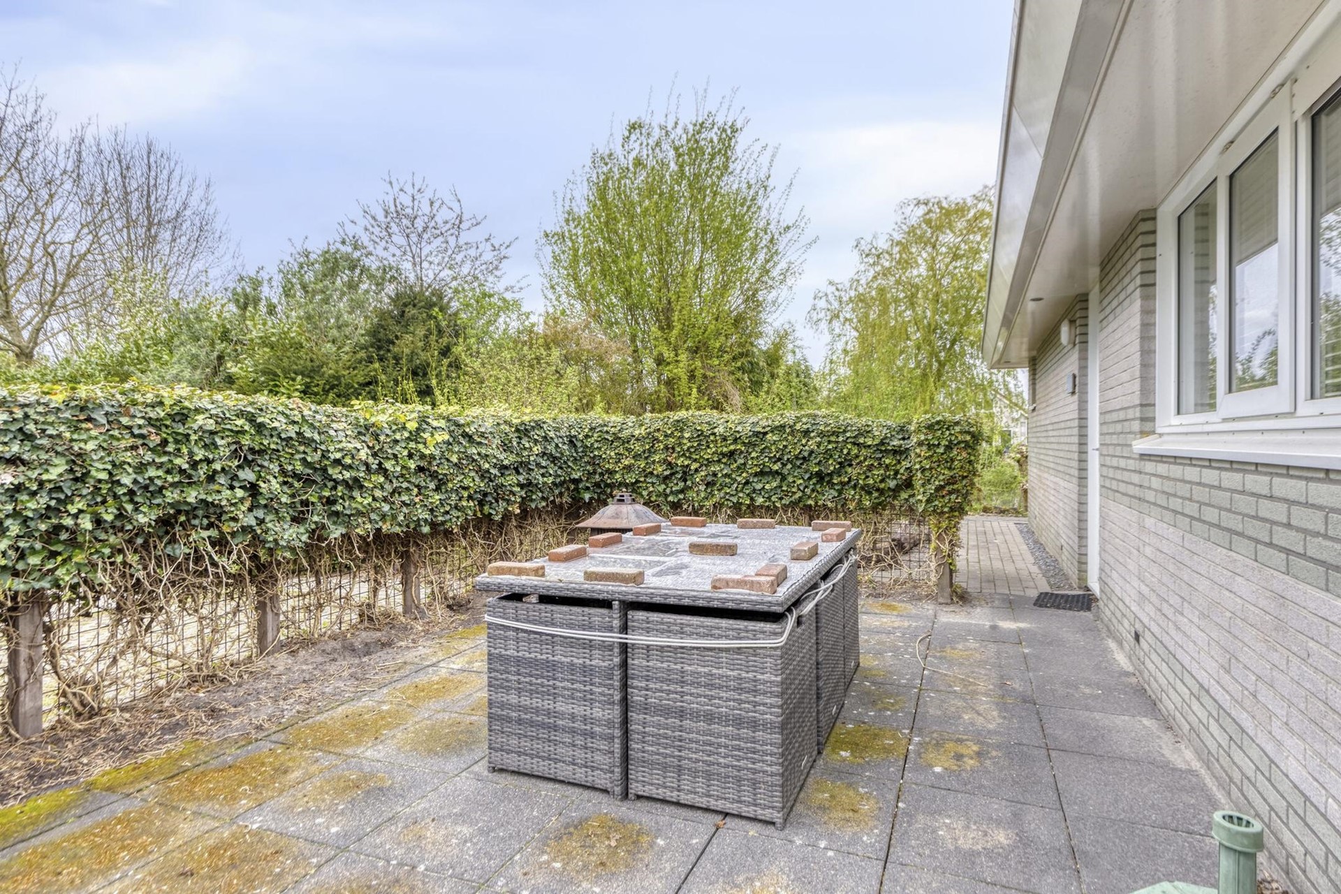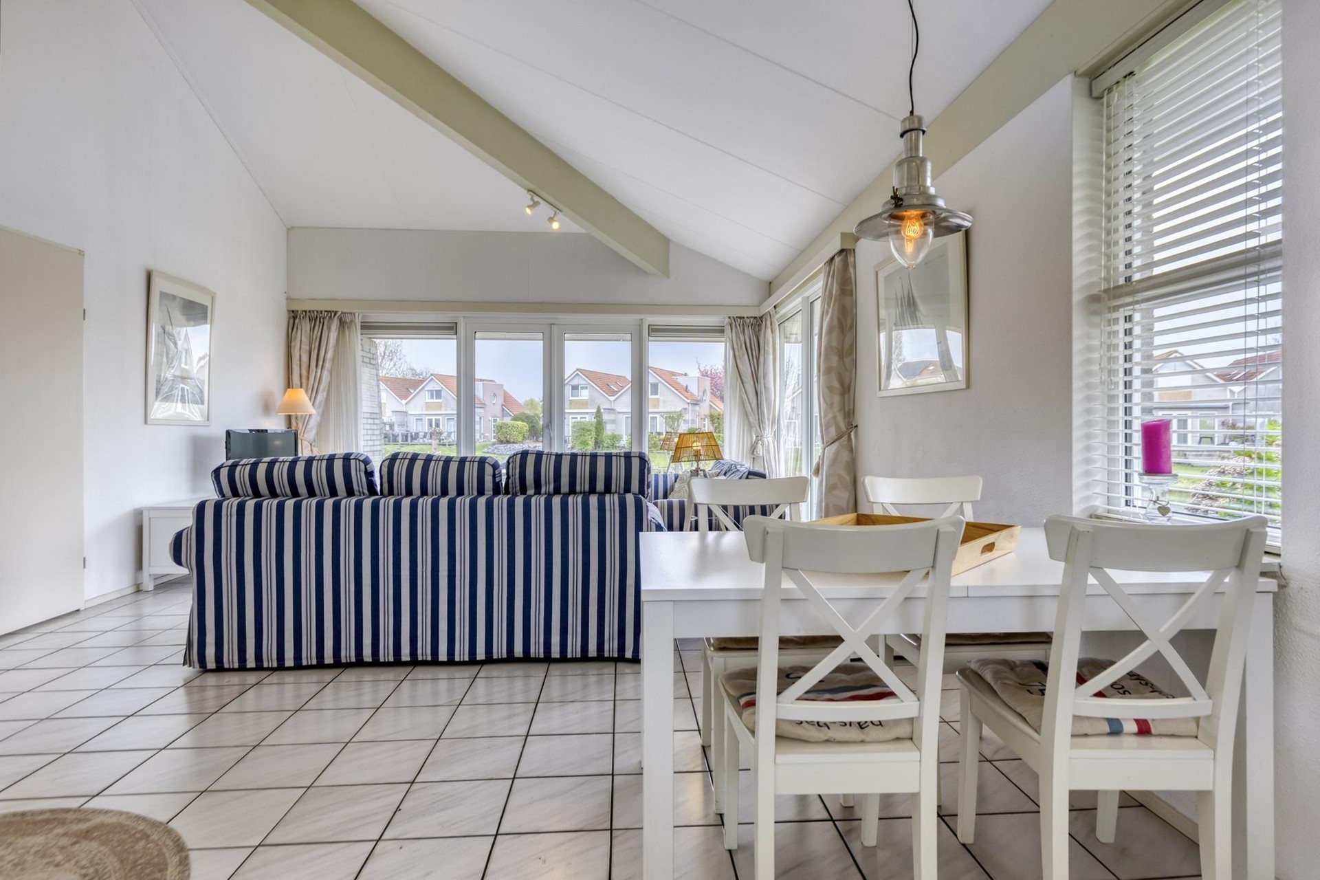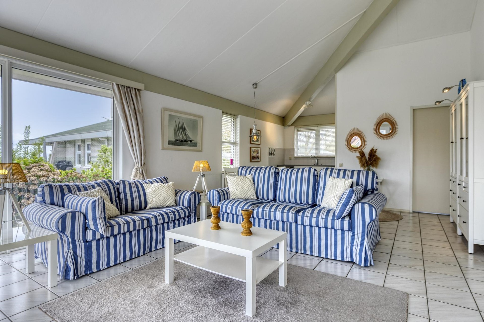 De lichte living is heerlijk gesitueerd richting het water en biedt prachtig uitzicht dankzij een extra venster in de hoek. Via de openslaande deuren stap je zo het terras en de groene tuin in.