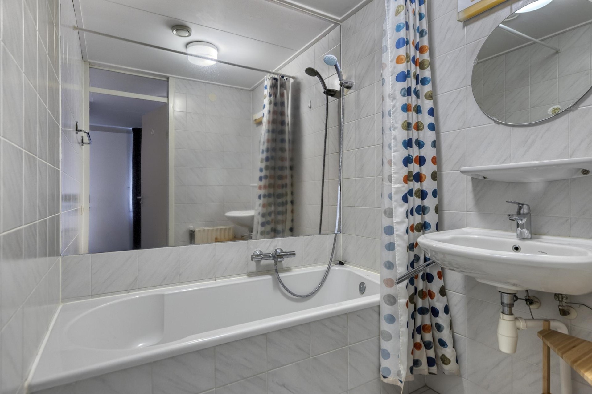 Binnenkomst in de hal met toegang tot drie slaapkamers. De ouderslaapkamer is opvallend ruim en heeft een eigen badkamer met ligbad. De tweede badkamer, met douche en wastafel, is bereikbaar via de hal.