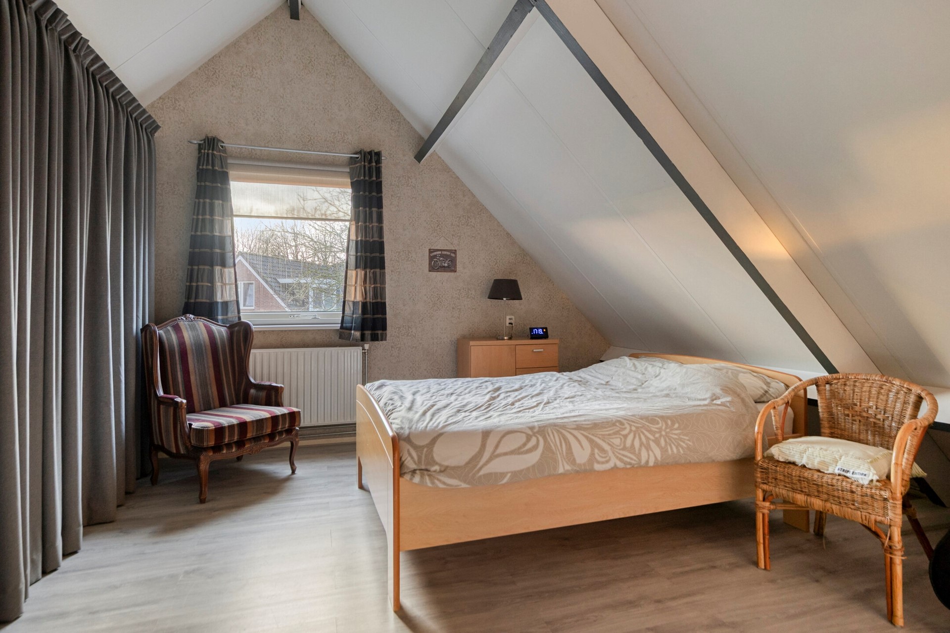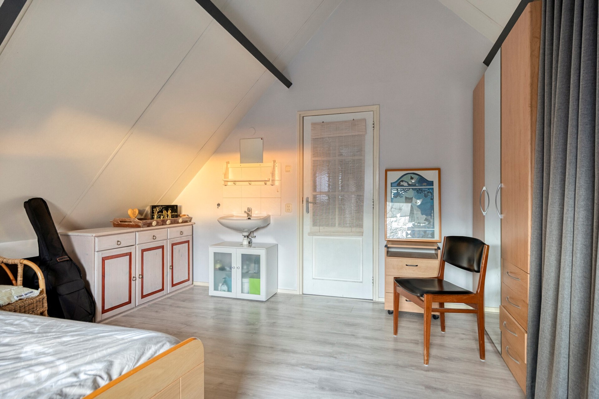 De overloop geeft toegang tot twee ruime slaapkamers, beide voorzien van een eigen wastafel. Tussen de slaapkamers bevindt zich een praktische berging met de opstelling van de cv-ketel.